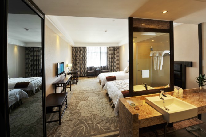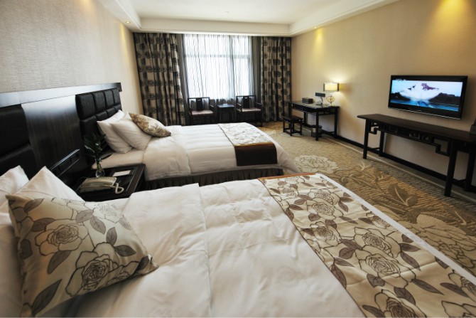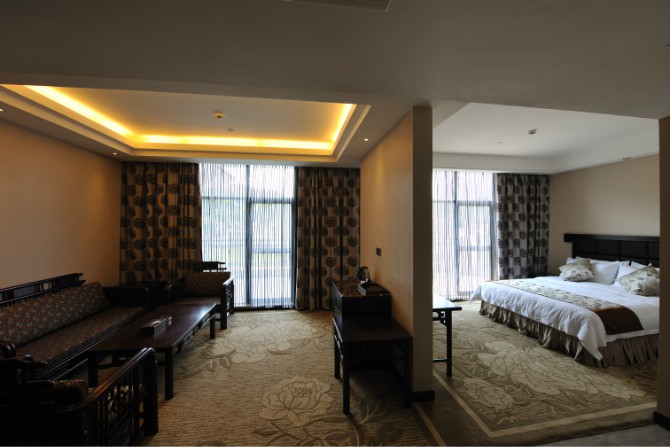 房內(nèi)設(shè)施齊全,使用中央空調(diào),37寸3D液晶電視,客房免費(fèi)提供不計(jì)時(shí)國內(nèi)長途電話,免費(fèi)光纖網(wǎng)絡(luò)接入,紅木家具,保險(xiǎn)箱、冰箱。酒店餐廳設(shè)有豪華餐飲包房11間。